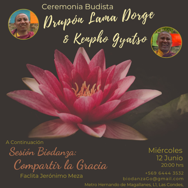 Ceremonia Budista con dos Lamas de profunda y alegre presencia. Compartir contemporáneo de la sabiduría en torno a la celebración Budista Sawa Dawa, para amplificar la luz y la benevolencia. A continuación sesión de Biodanza «Compartir la Gracia» facilitada por Jerónimo Meza, inspiración para un movimiento feliz. ✨Miércoles 12 de junio 20:00 hrs. 🚉Metro Hernando…
