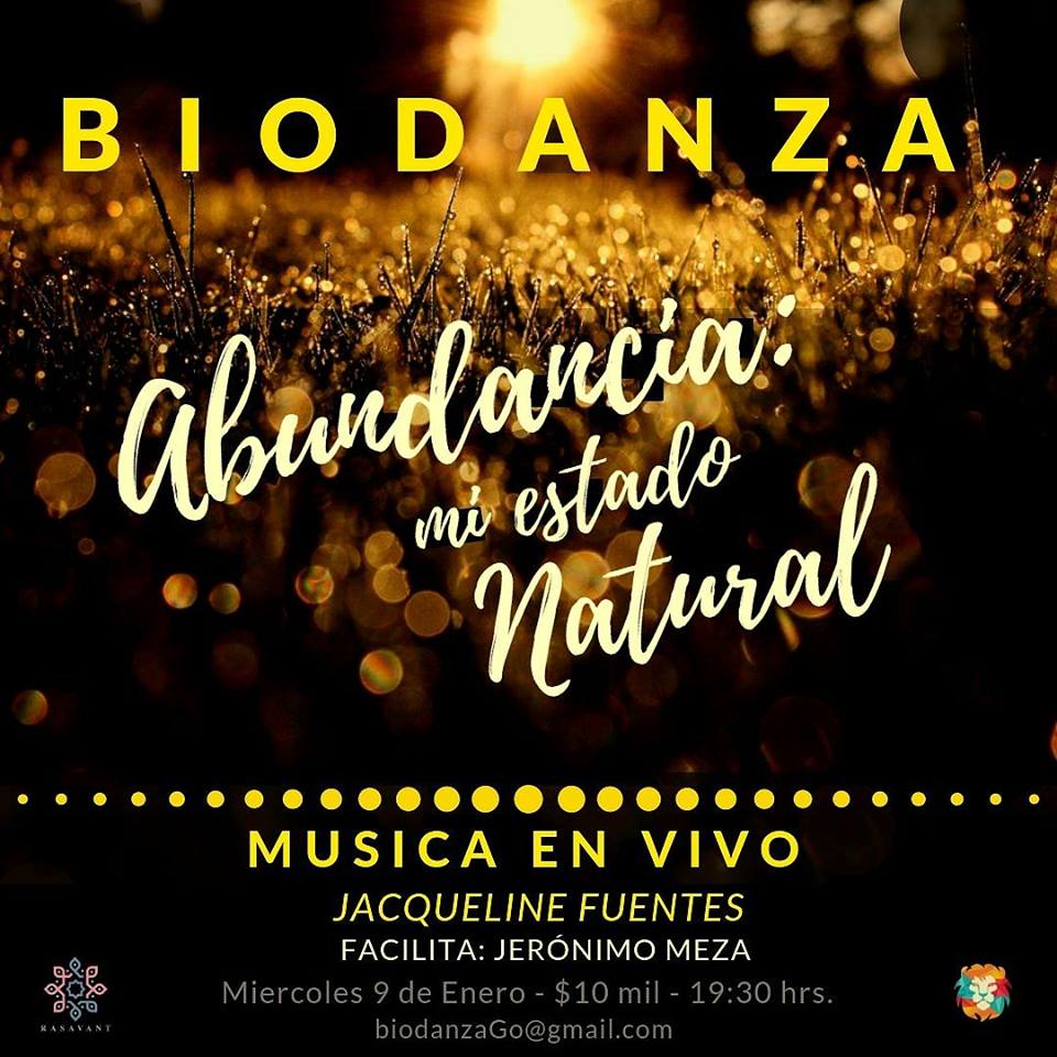 BIODANZA: MÚSICA EN VIVO ABUNDANCIA: MI ESTADO NATURAL, es una sesión para evocar el infinito potencial creativo de nuestro ser. Mediante el Movimiento, en Encuentro y la maravillosa voz de Jaqueline Fuentes poder…
